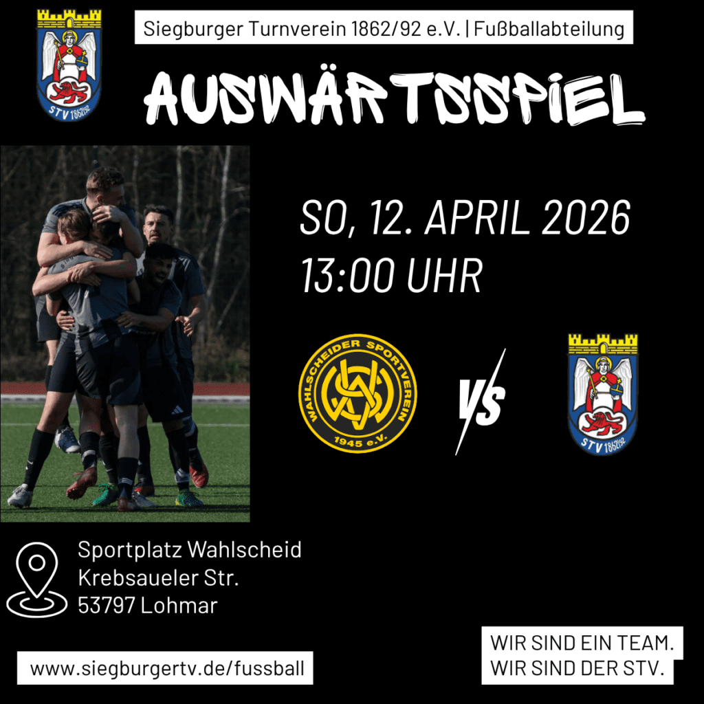 Am Sonntag (12. April 2026) geht es für uns auswärts zum Wahlscheider SV III. Anstoß ist um 13:00 Uhr.