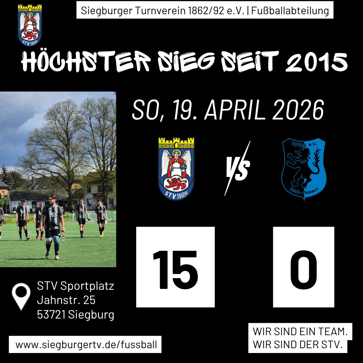 Der Siegburger TV hat am Sonntag gegen Spvgg Hurst Rosbach nicht lange gefackelt. Am Ende steht ein Sieg, der nicht nur deutlich war, sondern auch ein kleines Stück Vereinsgeschichte geschrieben hat. Höchster Sieg seit mindestens 2015. Und ja, es hat sich auch genau so angefühlt. Allen voran Eddy, der heute [...]