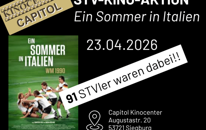 Wir wollen als STV gemeinsam ins Kino und einen Abend abseits des Platzes verbringen. Am Donnerstag, 23. April um 18:00 Uhr (Treffpunkt 17:45 Uhr vor dem Kino) wird im Capitol in Siegburg exklusiv für uns [...]