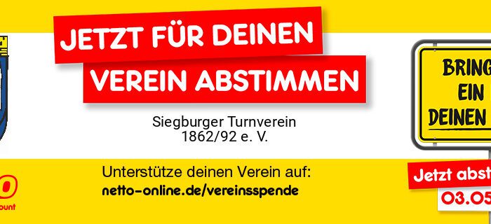 Wir sind bei der Netto Vereinsspende dabei 💪 Mit eurer Stimme könnt ihr unseren Verein direkt unterstützen. Das Geld fließt in unsere Jugendarbeit und kommt damit direkt unseren Kindern zugute. 👉 Hier abstimmen:https://www.netto-online.de/vereinsspende/Siegburger-Turnverein-1862-92.vhtm Dauert nur [...]