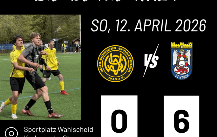 Am Sonntag (12. April 2026) geht es für uns auswärts zum Wahlscheider SV III. Anstoß ist um 13:00 Uhr. Der Gastgeber steht aktuell im Tabellenmittelfeld und hat zuletzt mit einem 3:2 gegen TuS Birk III [...]