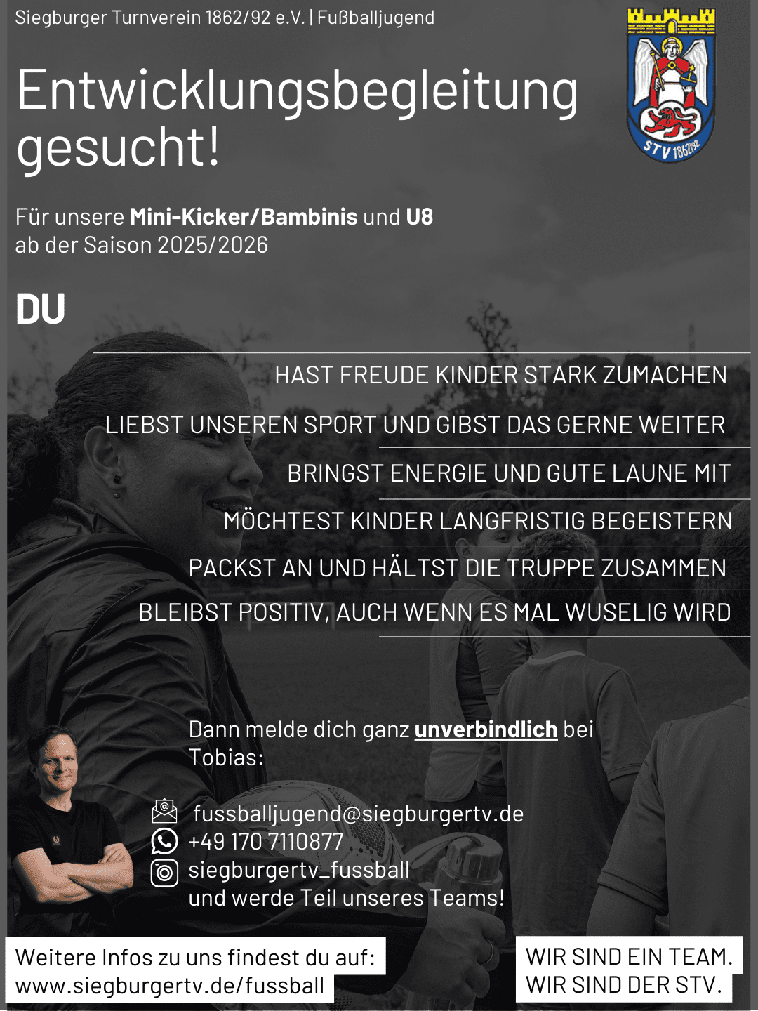 Ab der Saison 2025/2026 möchten wir unsere Jüngsten und die U8 weiter stärken. Dafür sucht die Fußballjugend des Siegburger Turnvereins Menschen, die Freude daran haben Kinder im Spiel zu begleiten und ihnen den Einstieg in [...]